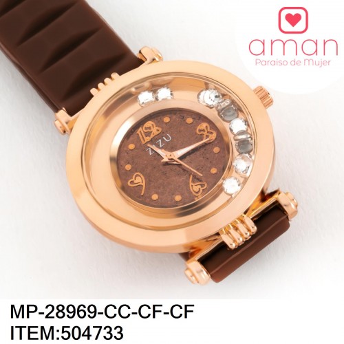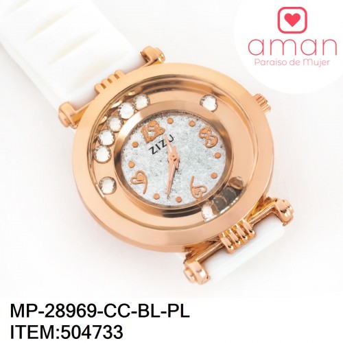 3 más imágenes -50% -50% 1 más imágen 1 más imágen Reloj de Dama con Extensible de Caucho con Fondo Liso y Piedras Blancas